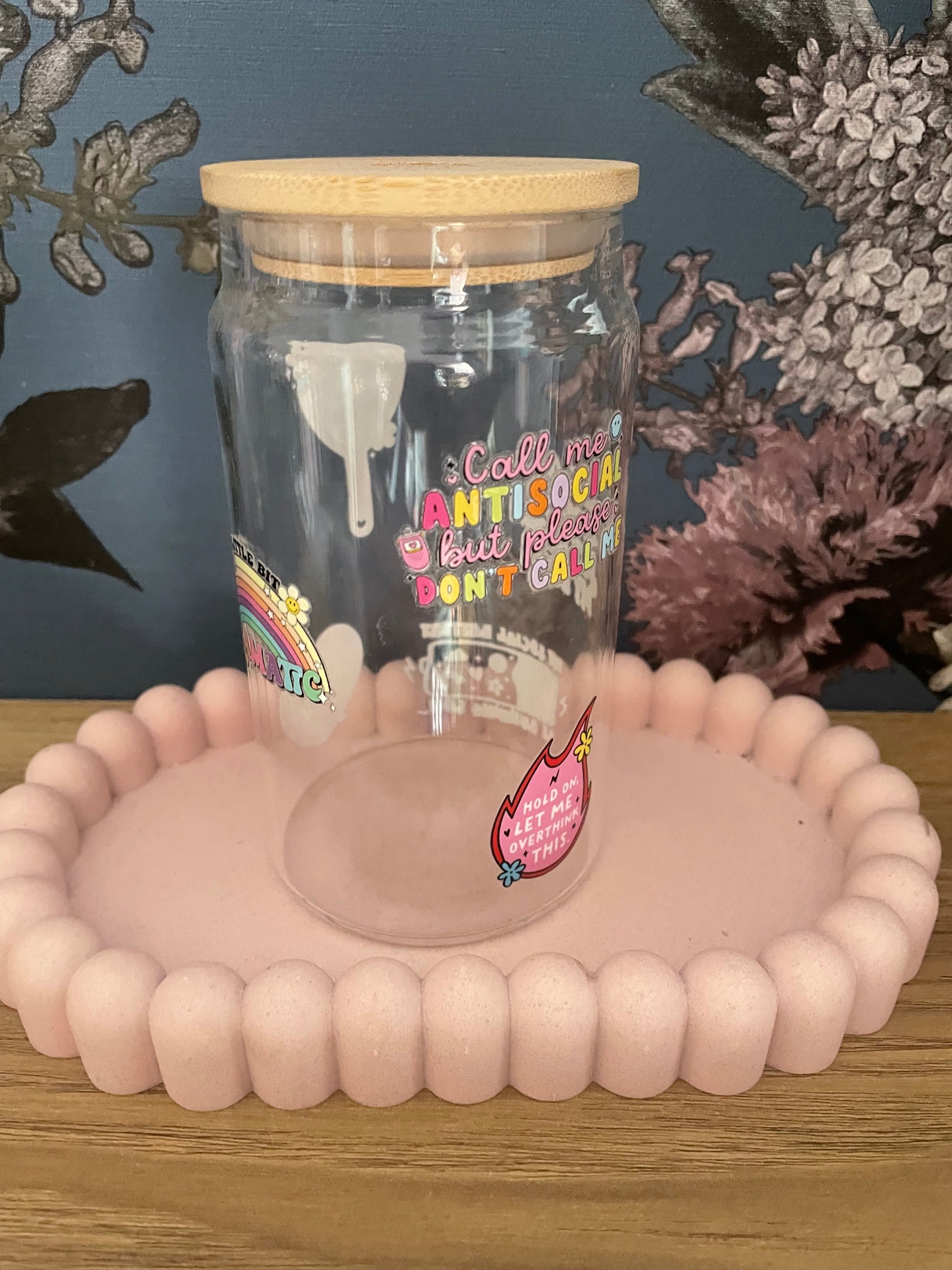 Positive quote glass tumbler with wooden lid and a glass straw …