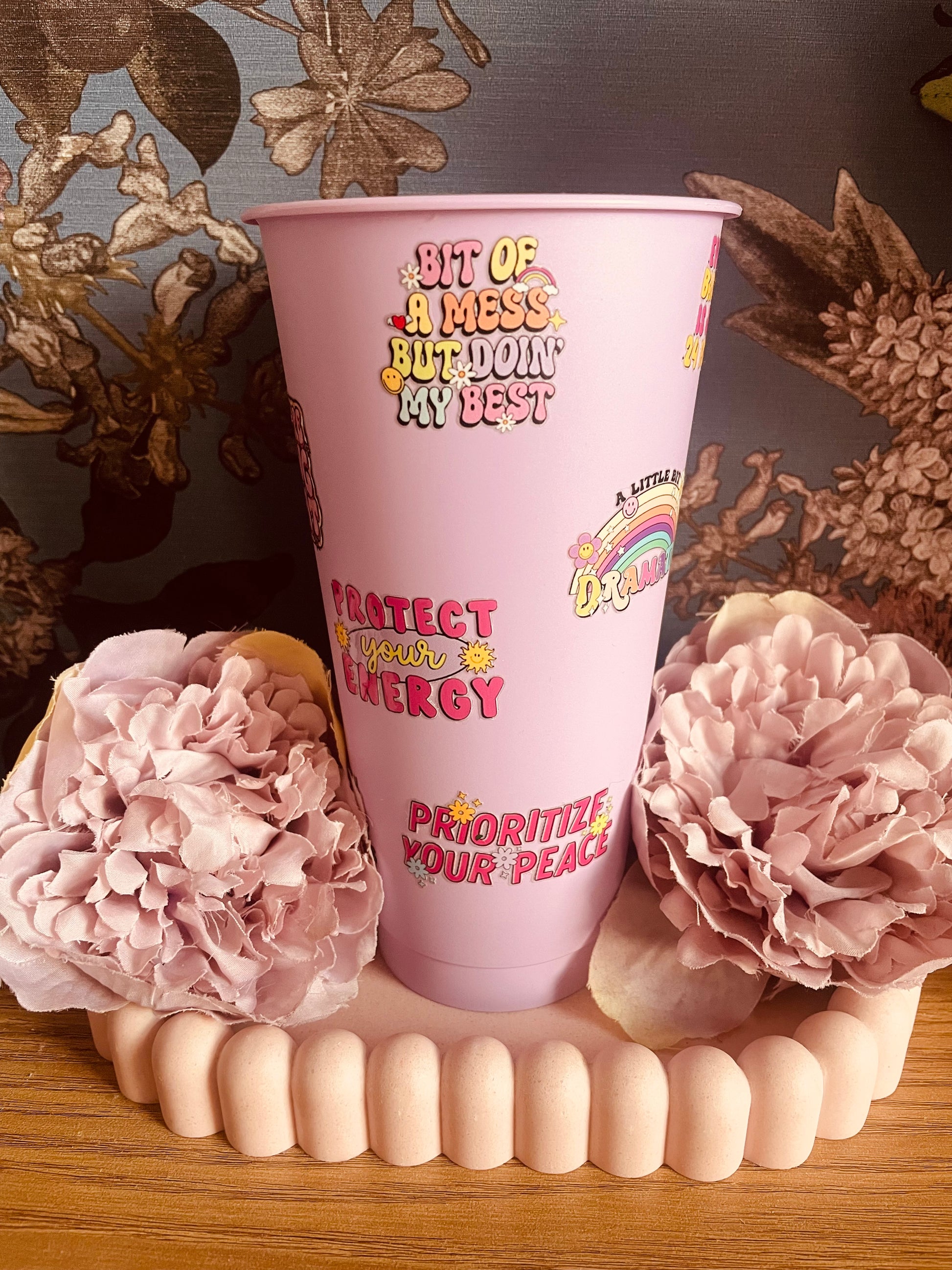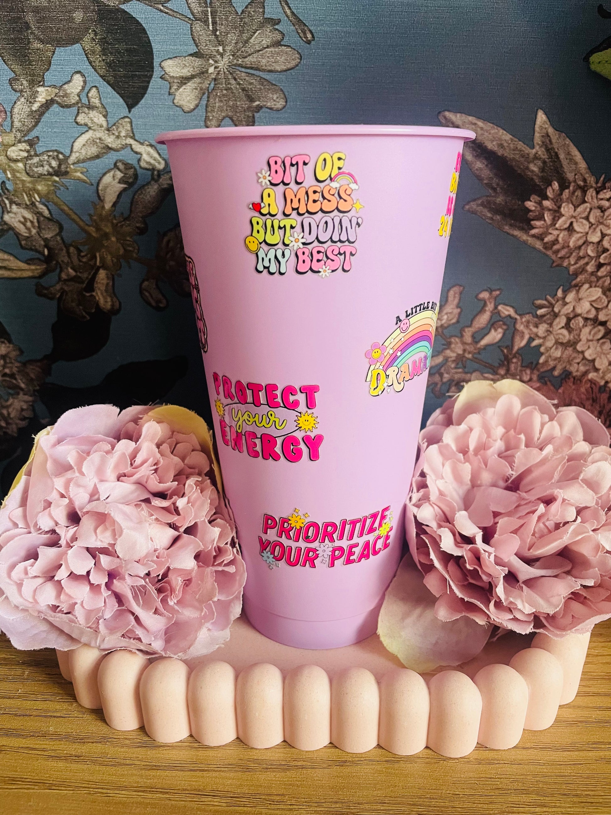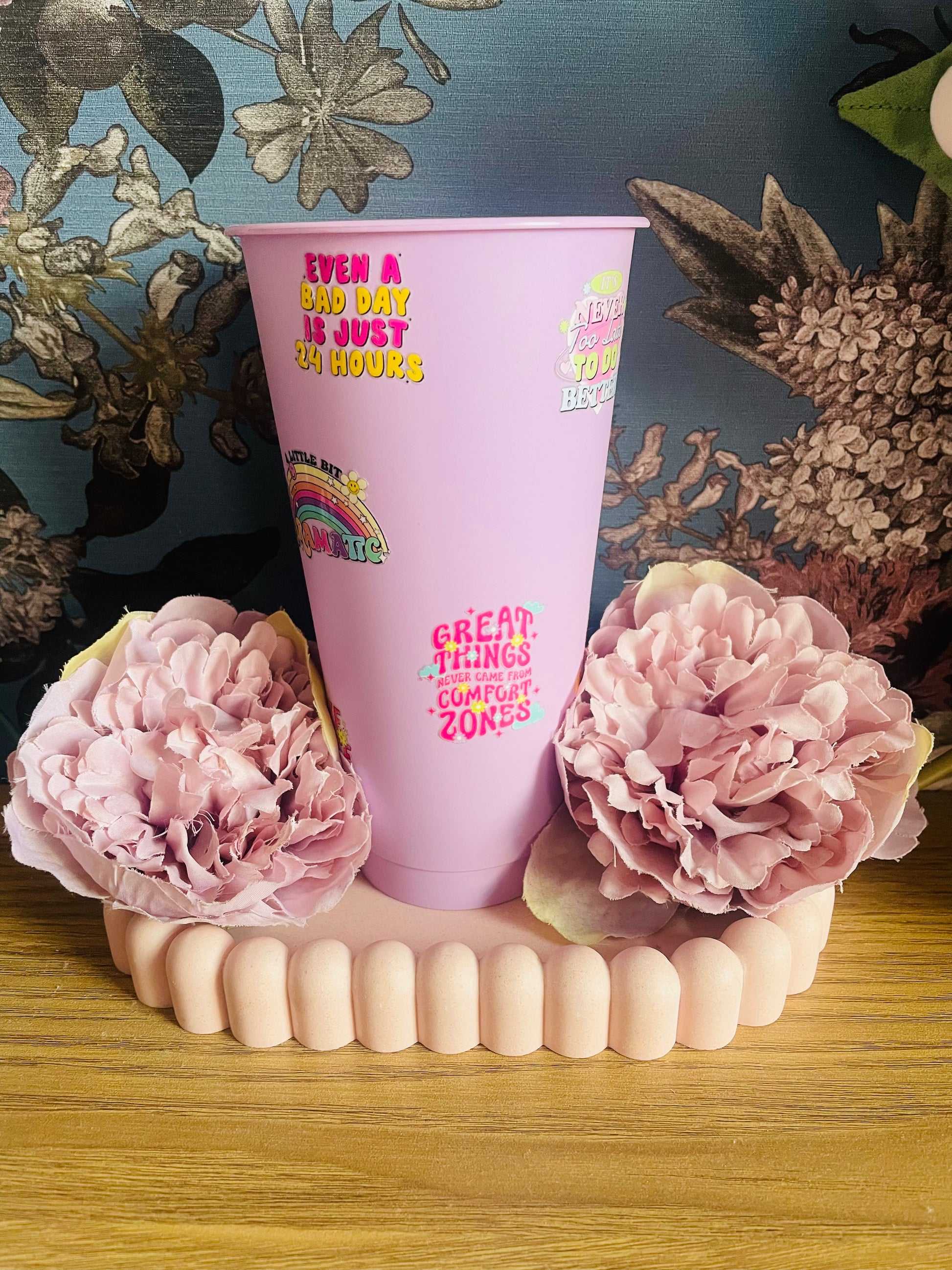 Positive quote cold tumbler in a Light purple